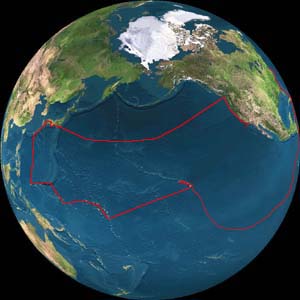 | Delaware Chesapeak Bay Buoaford, NC Florida Key West Cockburn, Grand Truk Jamaica Panama Galapagos Easter Island Pitcairn Gambier Tuamotus Tahiti Northern Cook Hawaii Marshall Islands Carolines Guam Palau Guam Okinawa Kogoshima Nagasaki Osaka Tokyo Vancouver Los Angeles |